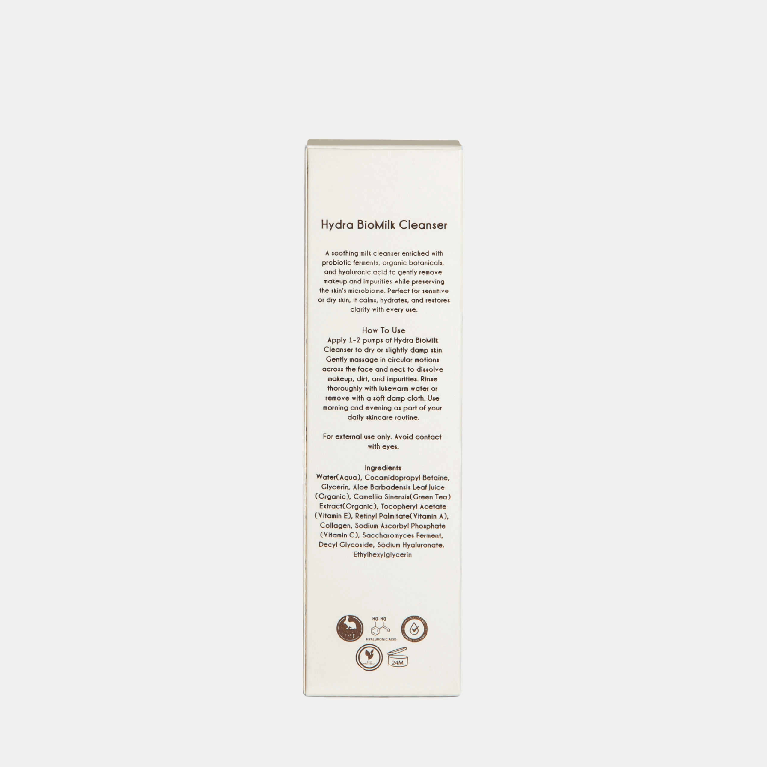 Hydra BioMilk Cleanser se nutre de una combinación única de fermentos probióticos y extractos orgánicos que trabajan en armonía para proteger y fortalecer la barrera cutánea. El fermento Saccharomyces ayuda a reequilibrar el microbioma, mientras que el Aloe Vera y el Té Verde calman y nutren. El Ácido Hialurónico y el Colágeno aportan una hidratación duradera, dejando la piel suave como la seda, flexible y fresca después de cada limpieza.