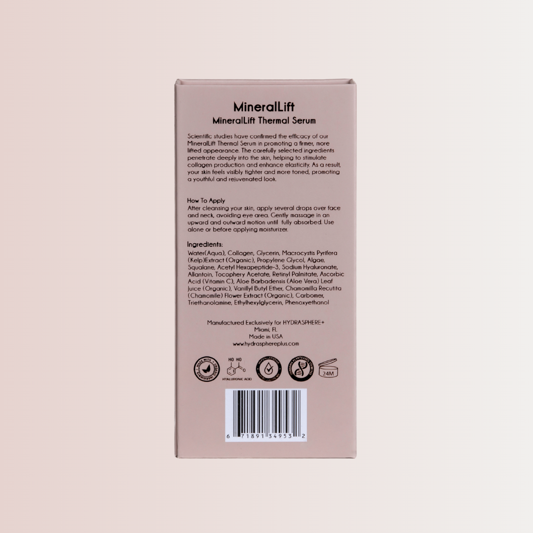 La eficacia de MineralLift Thermal Serum ha sido validada mediante estudios científicos, siendo el colágeno y la glicerina sus componentes clave. Al incorporar colágeno al sérum, MineralLift ayuda a reponer y mantener los niveles naturales de colágeno de la piel, lo que se traduce en un aspecto más firme y terso.