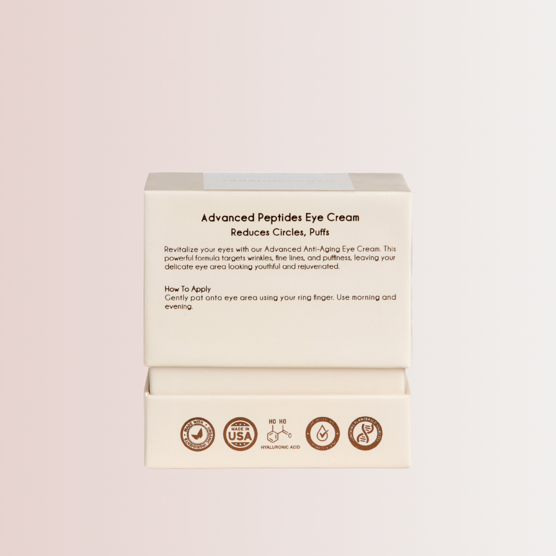 Revitalize your eyes with our Advanced Peptides Eye Cream. This powerful formula targets wrinkles, fine lines, and puffiness, leaving your delicate eye appearance youthful and rejuvenated.