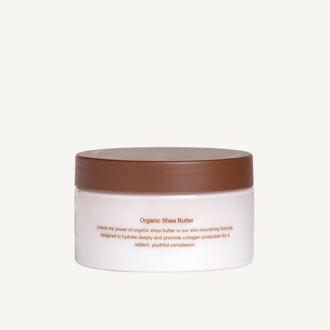 Unlock the power of organic shea butter with our deeply nourishing formula, meticulously designed to provide intense hydration and promote collagen production for a radiant, youthful complexion. This luxurious product harnesses the natural benefits of shea butter, renowned for its exceptional moisturizing properties and ability to enhance skin elasticity.